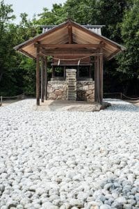 I intended to compare this to another Sugimoto installation, Appropriate Proportion, across the island in Honmura. Sugimoto restored the main, Edo period building at the the Go’oh Shrine, and added a new viewing pavilion and rock garden.