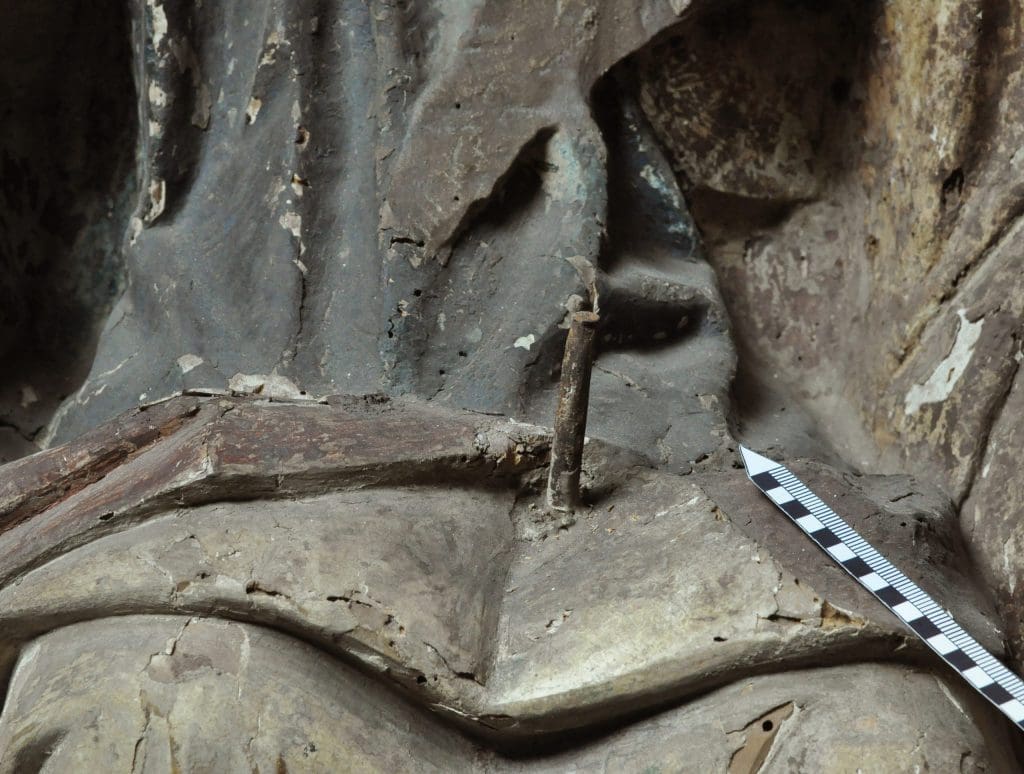 Fig. 9c. Hole in the head of the Weeping Saint Anne in fig. 9a (photo: Michael Rief, Aachen).